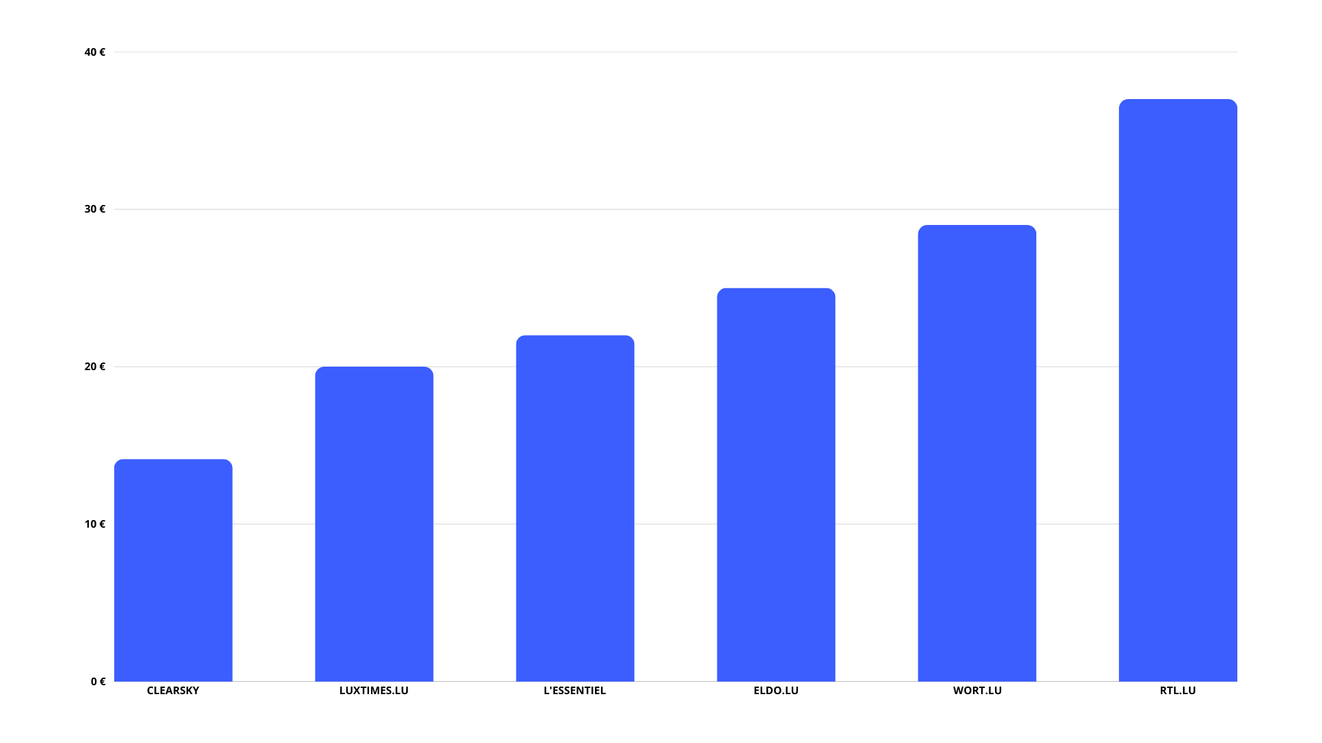 As you probably know, using luxembourgish media channels to advertise your business can quickly burn a hole in your wallet.We are proud to offer the most competitive CPM rates in Luxembourg. Nowhere else will you find the opportunity to reach such a large audience at such a reasonable cost.(CPM = How much € you need to spend to reach 1000 individuals.)What also sets us apart from our competitors is that we only charge for the actual number of impressions.If your ad falls below our average impression count, the pricing will be adjusted accordingly. If not, the cost remains unchanged.
