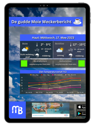 Météo Boulaide has been Luxembourg's leading weather service since its launch in December 2010. In addition to providing localized forecasts and manual alerts, our service has become a reference for thousands of Luxembourgers every day.With a strong presence on social networks, solid partnerships with media such as Tageblatt, and nationwide coverage, Météo Boulaide has been keeping an eye on your safety for over 15 years.Today, we're going one step further with our new mobile app, ranked No. 1 on the App Store in Luxembourg, to bring you the best weather information, wherever you are.